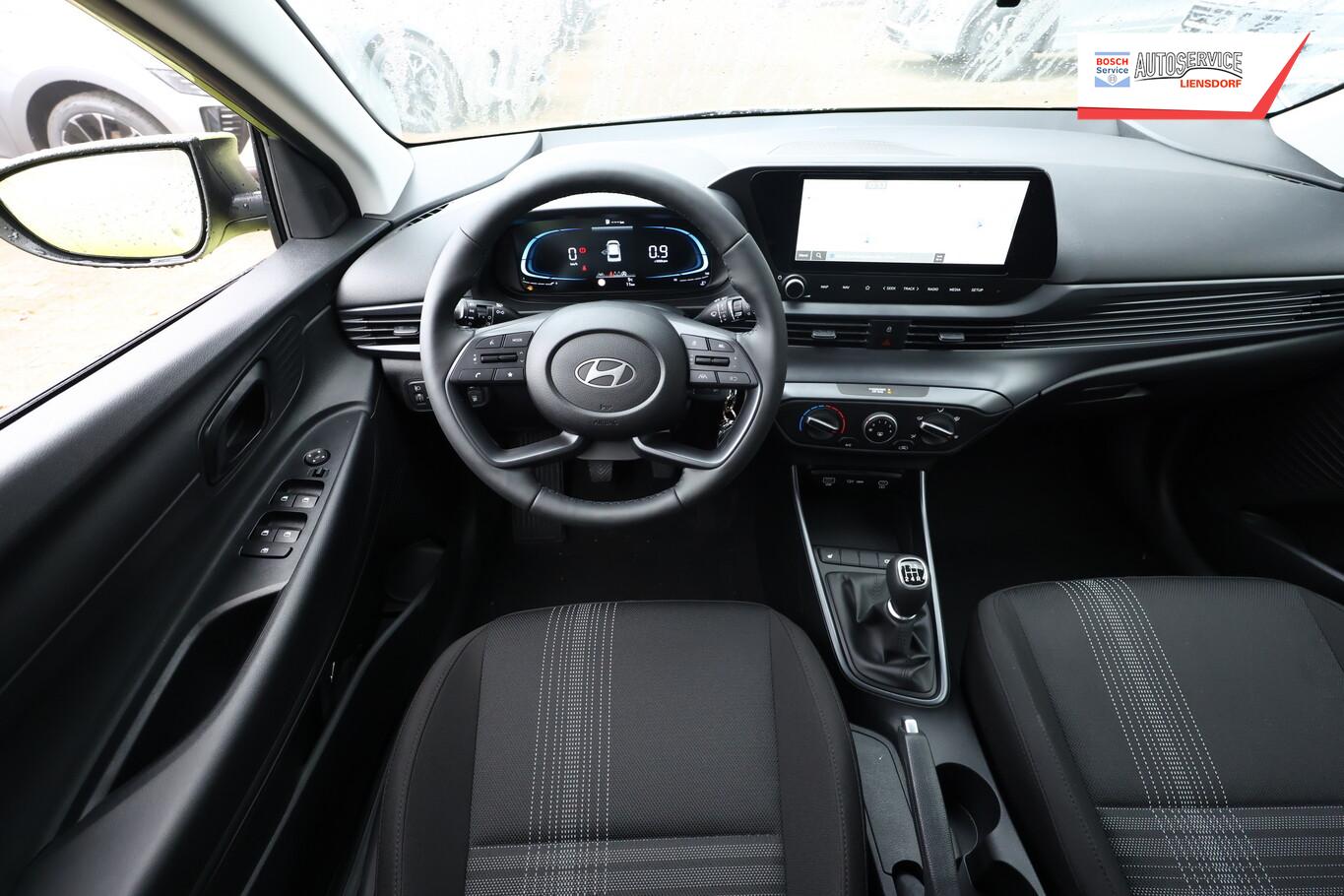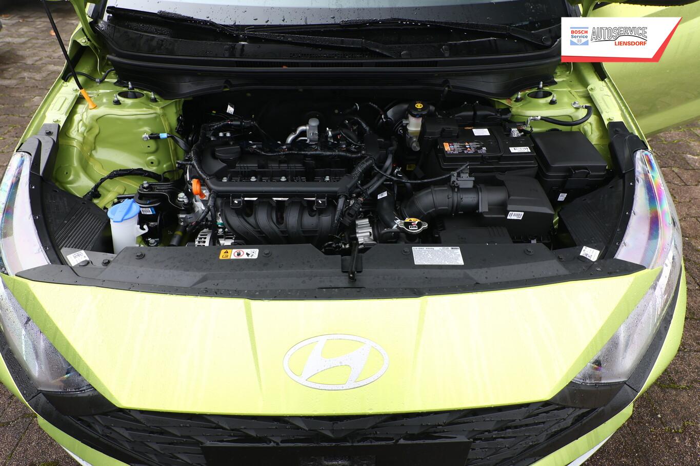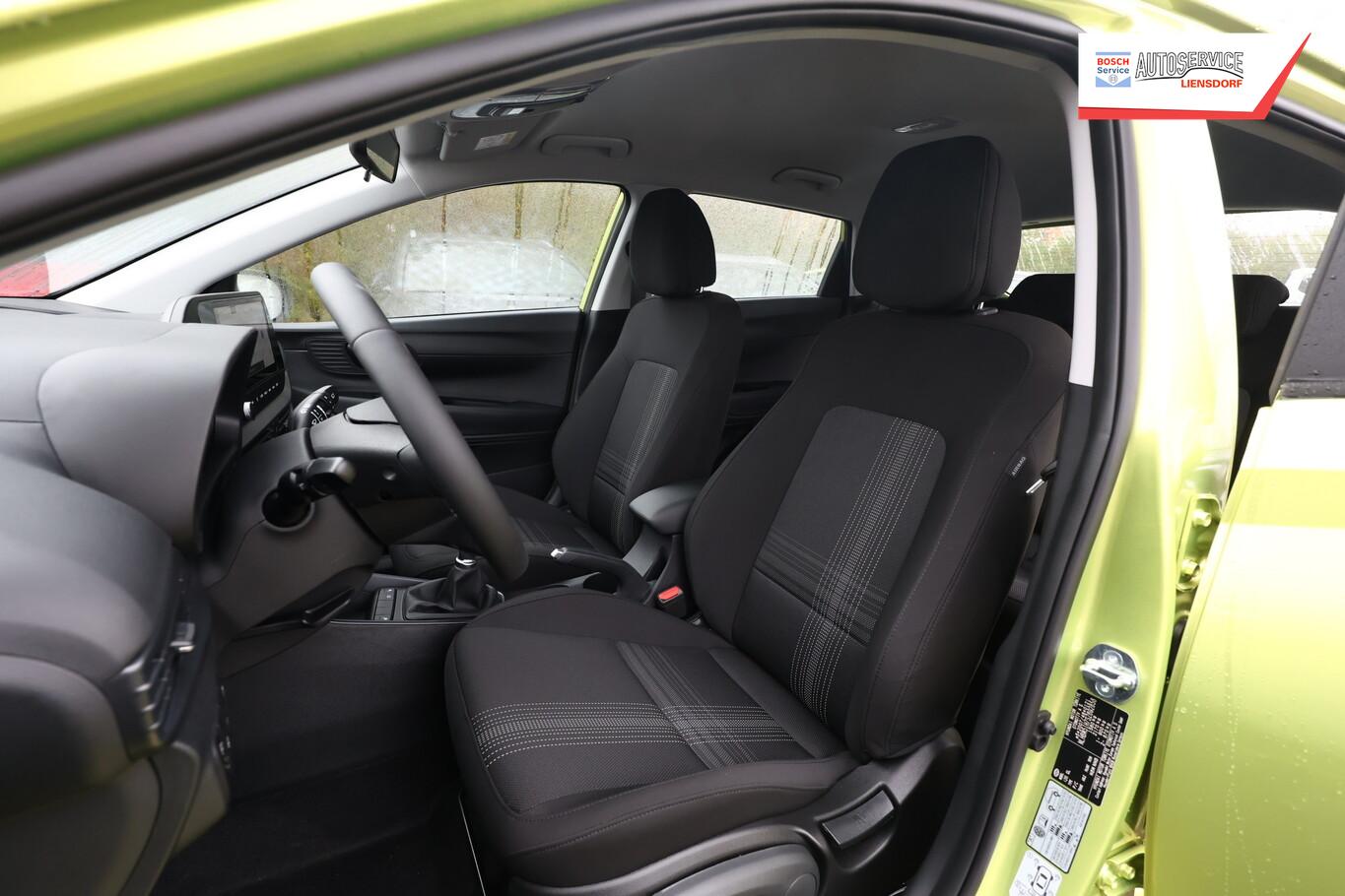 Armlehne vorn verschiebbar, mit Stauraum, Beifahrersitz mit Tasche an Rückseite, Ersatzrad, Innenspiegel abblendbar, Isofix-Aufnahmen für Kindersitz, Kopfstützen vorn verstellbar, Lenkrad heizbar, LM-Felgen 16 Zoll, Reifen 195/55 R16, Schadstoffarm nach Abgasnorm Euro 6e (EU6 EA), Sitzheizung vorn, SmartLink (Apple CarPlay und Android Auto), 4 Lautsprecher (Hochtöner), Audio-Navigationssystem (Touchscreen-Farbdisplay (10,25 Zoll)), Service-System: Remote Services (Blue Link) (Service-System: Online Update OTA (Over The Air)), Fahrassistenz-System: Autonome Notbremsfunktion inkl. Frontkollisionswarnung (FCA) (Fahrassistenz-System: Autonome Notbremsfunktion inkl. Fahrradfahrererkennung (FCA-Cyc.) / Fahrassistenz-System: Autonome Notbremsfunktion inkl. Fußgängererkennung (FCA-Ped.)), Außenspiegel lackiert, Fahrassistenz-System: Insassenalarm (ROA), Fahrassistenz-System: Multikollisionsbremse (Multi Collision Brake), Heckscheibe heizbar, Karosserie: 5-türig, Kopfstützen hinten verstellbar, Lenkrad (4-Speichen), Lenksäule (Lenkrad) höhenverstellbar, Lenksäule (Lenkrad) längsverstellbar, Motor 1,2 Ltr. - 58 kW KAT, Radioempfang digital (DAB+), Sitz vorn links höhenverstellbar, Sitzbezug / Polsterung: Stoff, Sonnenblenden mit Spiegel, Steckdose (12V-Anschluß) vorn, Türgriffe außen Wagenfarbe, Freisprecheinrichtung Bluetooth, USB-Anschluss (Typ C), USB-Anschluss hinten, USB-Anschluss Mittelkonsole, Anti-Blockier-System (ABS), Elektron. Stabilitätskontrolle (ESC) mit Bremsassistent, Wegfahrsperre (elektronisch), Getriebe 5-Gang, Klimaanlage, Airbag Beifahrerseite, Airbag Beifahrerseite abschaltbar, Airbag Fahrerseite, Fensterheber elektrisch hinten, Fensterheber elektrisch vorn, Kopf-Airbag-System, Rücksitzlehne geteilt/klappbar, Seitenairbag vorn, Zentralverriegelung mit Fernbedienung, Fahrer-Informations-System (Display 4,2 Zoll), Fahrassistenz-System: Berganfahrhilfe, Fahrassistenz-System: Verkehrszeichenerkennung, erweitert (Geschwindigkeits-Regel-/Begrenzeranlage), Geschwindigkeits-Regelanlage (Tempomat), Rückfahrkamera, Fahrassistenz-System: Sicherheitssystem mit automatischem Notruf (ERA GLONASS / eCall), Lenkrad (Leder) mit Multifunktion, Servolenkung, Außenspiegel elektr. verstell- und heizbar, beide, Einschaltautomatik für Fahrlicht / Lichtsensor, Einparkhilfe hinten, Fahrassistenz-System: aktiver Spurhalteassistent (LKAS, Lane Keep Assist System), Reifendruck-Kontrollsystem, Alarmanlage, Start/Stop-Anlage