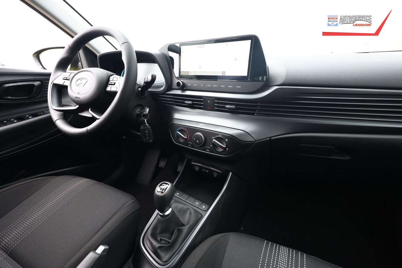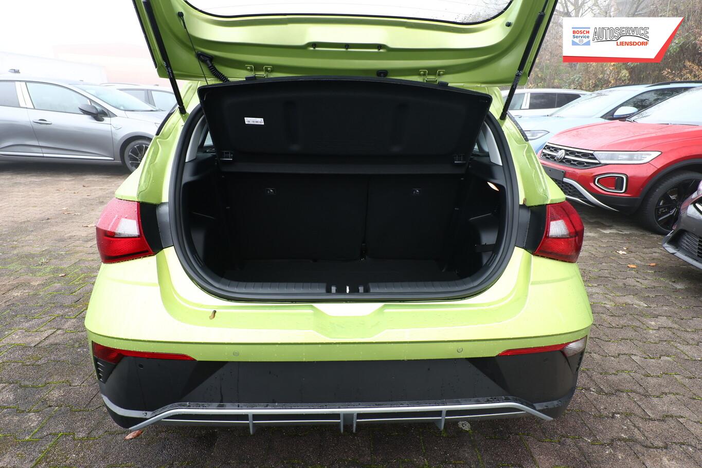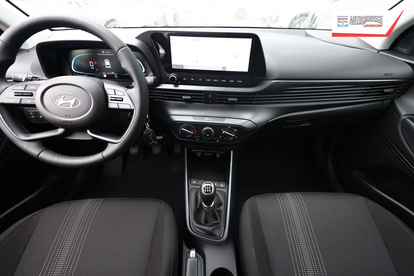 Armlehne vorn verschiebbar, mit Stauraum, Beifahrersitz mit Tasche an Rückseite, Ersatzrad, Innenspiegel abblendbar, Isofix-Aufnahmen für Kindersitz, Kopfstützen vorn verstellbar, Lenkrad heizbar, LM-Felgen 16 Zoll, Reifen 195/55 R16, Schadstoffarm nach Abgasnorm Euro 6e (EU6 EA), Sitzheizung vorn, SmartLink (Apple CarPlay und Android Auto), 4 Lautsprecher (Hochtöner), Audio-Navigationssystem (Touchscreen-Farbdisplay (10,25 Zoll)), Service-System: Remote Services (Blue Link) (Service-System: Online Update OTA (Over The Air)), Fahrassistenz-System: Autonome Notbremsfunktion inkl. Frontkollisionswarnung (FCA) (Fahrassistenz-System: Autonome Notbremsfunktion inkl. Fahrradfahrererkennung (FCA-Cyc.) / Fahrassistenz-System: Autonome Notbremsfunktion inkl. Fußgängererkennung (FCA-Ped.)), Außenspiegel lackiert, Fahrassistenz-System: Insassenalarm (ROA), Fahrassistenz-System: Multikollisionsbremse (Multi Collision Brake), Heckscheibe heizbar, Karosserie: 5-türig, Kopfstützen hinten verstellbar, Lenkrad (4-Speichen), Lenksäule (Lenkrad) höhenverstellbar, Lenksäule (Lenkrad) längsverstellbar, Motor 1,2 Ltr. - 58 kW KAT, Radioempfang digital (DAB+), Sitz vorn links höhenverstellbar, Sitzbezug / Polsterung: Stoff, Sonnenblenden mit Spiegel, Steckdose (12V-Anschluß) vorn, Türgriffe außen Wagenfarbe, Freisprecheinrichtung Bluetooth, USB-Anschluss (Typ C), USB-Anschluss hinten, USB-Anschluss Mittelkonsole, Anti-Blockier-System (ABS), Elektron. Stabilitätskontrolle (ESC) mit Bremsassistent, Wegfahrsperre (elektronisch), Getriebe 5-Gang, Klimaanlage, Airbag Beifahrerseite, Airbag Beifahrerseite abschaltbar, Airbag Fahrerseite, Fensterheber elektrisch hinten, Fensterheber elektrisch vorn, Kopf-Airbag-System, Rücksitzlehne geteilt/klappbar, Seitenairbag vorn, Zentralverriegelung mit Fernbedienung, Fahrer-Informations-System (Display 4,2 Zoll), Fahrassistenz-System: Berganfahrhilfe, Fahrassistenz-System: Verkehrszeichenerkennung, erweitert (Geschwindigkeits-Regel-/Begrenzeranlage), Geschwindigkeits-Regelanlage (Tempomat), Rückfahrkamera, Fahrassistenz-System: Sicherheitssystem mit automatischem Notruf (ERA GLONASS / eCall), Lenkrad (Leder) mit Multifunktion, Servolenkung, Außenspiegel elektr. verstell- und heizbar, beide, Einschaltautomatik für Fahrlicht / Lichtsensor, Einparkhilfe hinten, Fahrassistenz-System: aktiver Spurhalteassistent (LKAS, Lane Keep Assist System), Reifendruck-Kontrollsystem, Alarmanlage, Start/Stop-Anlage