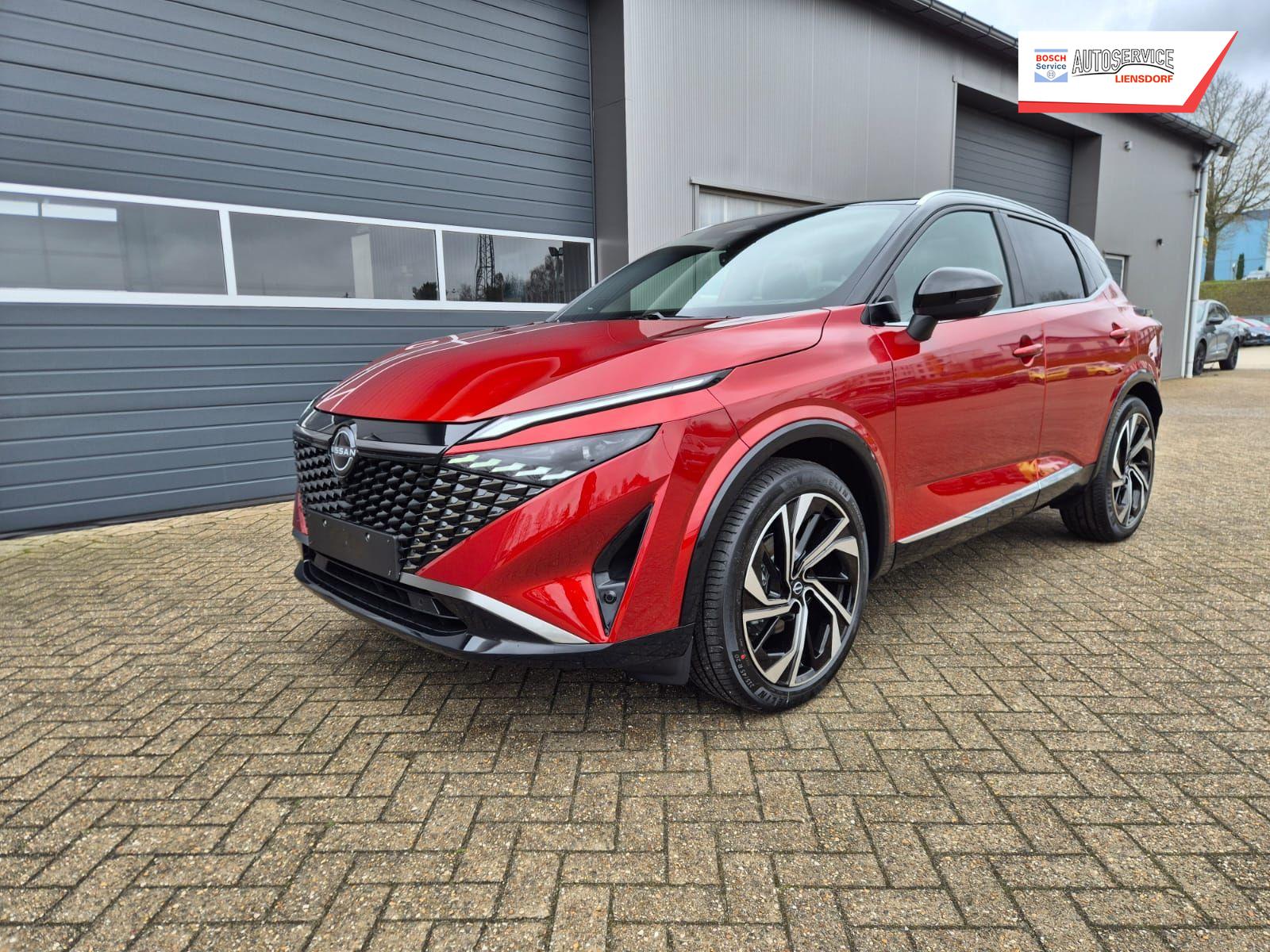 Nissan Qashqai 1.3 DIG-T MHEV 158 PS X-Tronic Tekna Premium Paket 20"LM Teil-Leder PanoGlasdach Klimaautomatik Sitzheizung Lenkradheizung Navi Head-Up Display elektr. Heckklappe ACC PDC v+h 360°Kamera DAB Bluetooth Touchscreen Apple CarPlay Android Auto