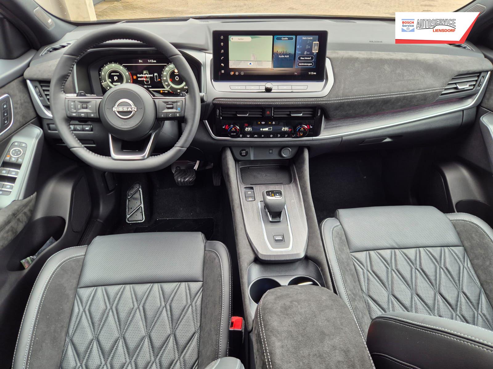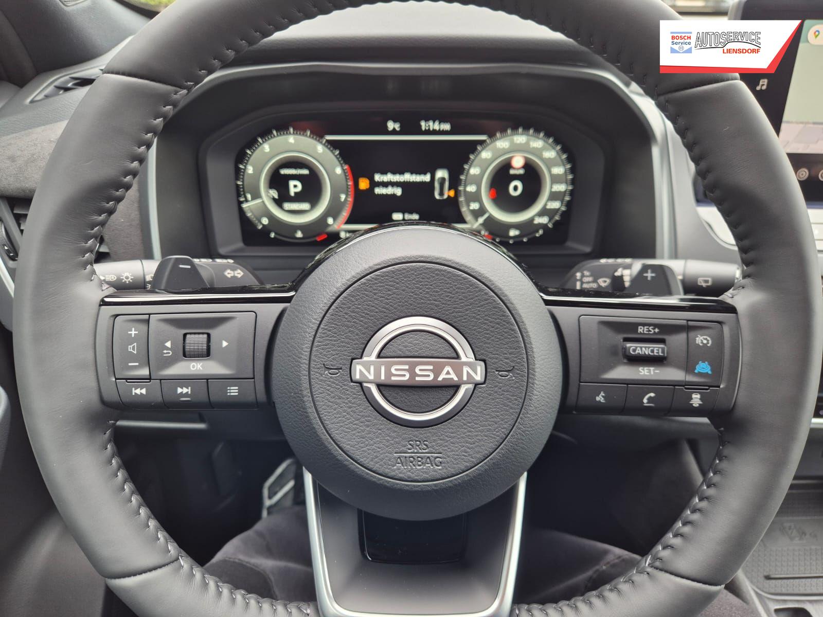 Nissan Qashqai 1.3 DIG-T MHEV 158 PS X-Tronic Tekna Premium Paket 20"LM Teil-Leder PanoGlasdach Klimaautomatik Sitzheizung Lenkradheizung Navi Head-Up Display elektr. Heckklappe ACC PDC v+h 360°Kamera DAB Bluetooth Touchscreen Apple CarPlay Android Auto
