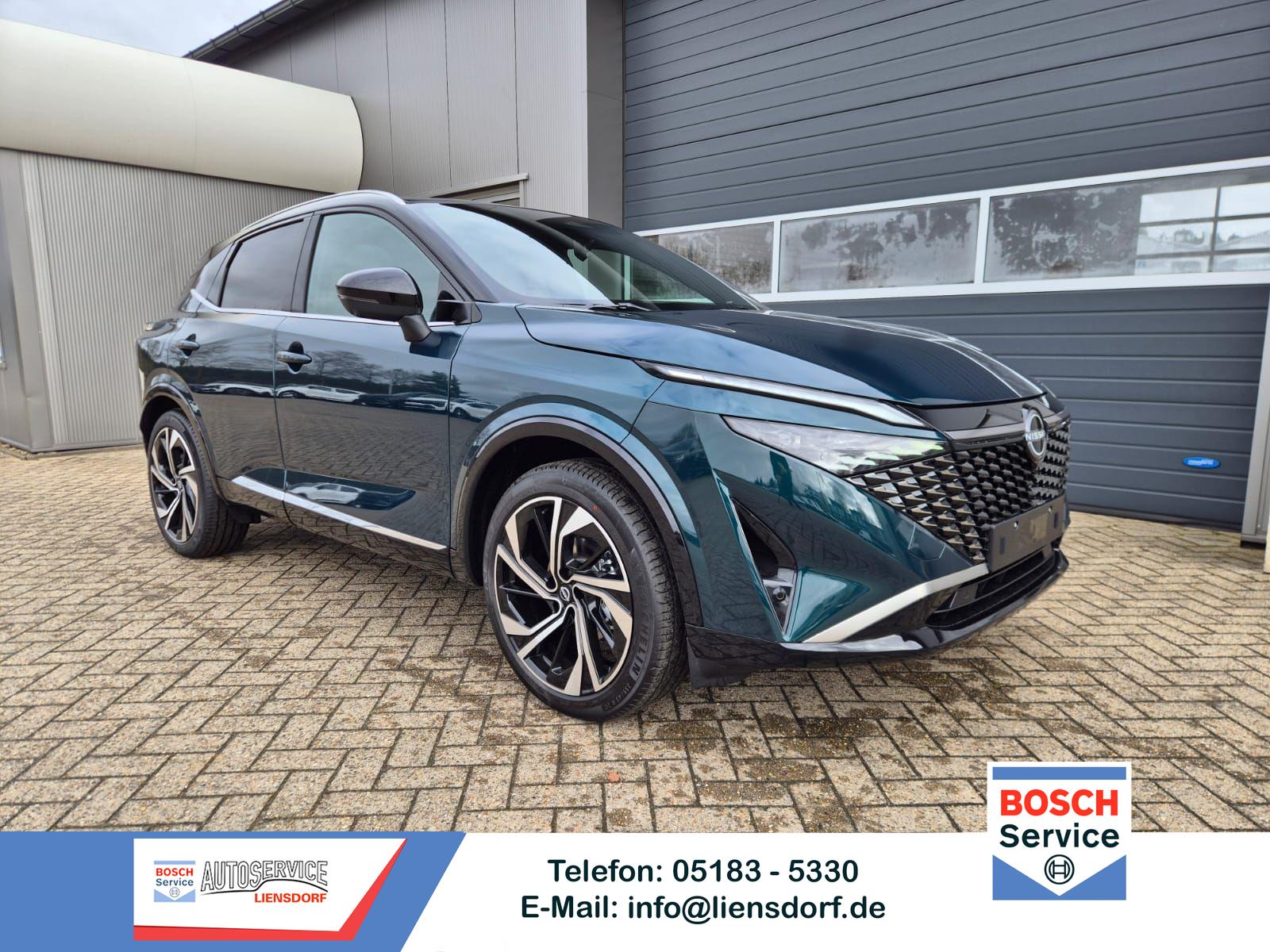 Nissan Qashqai 1.3 DIG-T MHEV 158 PS X-Tronic Tekna Premium Paket 20"LM Teil-Leder PanoGlasdach Klimaautomatik Sitzheizung Lenkradheizung Navi Head-Up Display elektr. Heckklappe ACC PDC v+h 360°Kamera DAB Bluetooth Touchscreen Apple CarPlay Android Auto