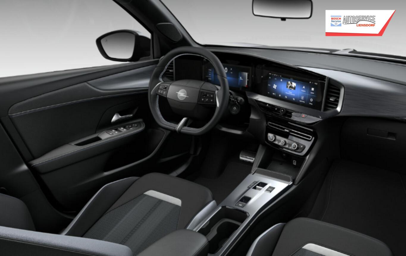 Infotainment-Paket (6 Lautsprecher / Induktionsladeschale für Smartphone (Wireless Charging) / Multifunktionsanzeige mit Touchscreen-Farbdisplay 12 Zoll / Opel Connect / Audio-Navigationssystem Multimedia Navi Pro (10" Display) / Smartphone Schnittstelle (Apple CarPlay & Android Auto)), Winter-Paket (Lenkrad heizbar / Sitzheizung vorn), Reifen-Reparaturkit, Ablagetasche an Rückseite der Vordersitzlehnen, Fahrassistenz-System: Automatisches Fernlicht, Fahrassistenz-System: Notbrems-Assistent, Fahrassistenz-System: Spurhalteassistent, Innenspiegel abblendbar, Isofix-Aufnahmen für Kindersitz, Kombiinstrument Digital, Lenkrad (Leder), Lenkrad heizbar, Leseleuchten LED vorn, LM-Felgen 17 Zoll, Notrufassistent, Otto-Partikelfilter, Reifen 215/60 R17, Reifendruck Überwachung, Sitz vorn links höhenverstellbar, Sommerreifen, Start-/Stopp System, Zentralverriegelung, Black-Paket (Dach, Design-Ausführung (schwarz) / Kühlergrill, Opel Vizor, Rahmen in Hochglanz-Schwarz / Schriftzug Heckklappe Schwarz, Hochglanz), Parkpilotsystem hinten (Rückfahrkamera mit 180° Umgebungsansicht), DAB-Tuner (Radioempfang digital), Karosserie: 5-türig, Mild-Hybrid 107 kW (Motor 1,2 Ltr. - 100 kW), Radstand 2557 mm, Freisprecheinrichtung Bluetooth, Anti-Blockier-System (ABS), Antriebsart: Frontantrieb, Elektron. Stabilitäts-Programm Plus (ESP), Getriebe Automatik - Doppelkupplungsgetriebe (6-Stufen, Hybrid), Klimaautomatik, Fahrassistenz-System: Verkehrszeichenerkennung, Heckleuchten LED, Scheibenwischer mit Regensensor, Fahrassistenz-System: Müdigkeitserkennungs-Sensor