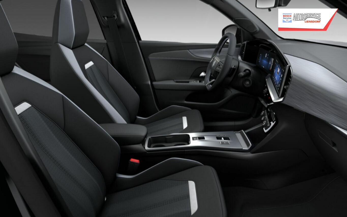 Winter-Paket (Lenkrad heizbar / Sitzheizung vorn), Reifen-Reparaturkit, Ablagetasche an Rückseite der Vordersitzlehnen, Fahrassistenz-System: Automatisches Fernlicht, Fahrassistenz-System: Notbrems-Assistent, Fahrassistenz-System: Spurhalteassistent, Innenspiegel abblendbar, Isofix-Aufnahmen für Kindersitz, Kombiinstrument Digital, Lenkrad (Leder), Lenkrad heizbar, Leseleuchten LED vorn, LM-Felgen 17 Zoll, Multifunktionsanzeige mit Touchscree-Farbdisplay 10 Zoll, Navigation in Verbindung mit dem Smartphone (über Apple Carplay / Android Auto /...), Notrufassistent, Otto-Partikelfilter, Reifen 215/60 R17, Reifendruck Überwachung, Sitz vorn links höhenverstellbar, Sommerreifen, Start-/Stopp System, Zentralverriegelung, Audiosystem Multimedia (6 Lautsprecher / Smartphone Schnittstelle (Apple CarPlay & Android Auto)), Black-Paket (Dach, Design-Ausführung (schwarz) / Kühlergrill, Opel Vizor, Rahmen in Hochglanz-Schwarz / Schriftzug Heckklappe Schwarz, Hochglanz), Parkpilotsystem hinten (Rückfahrkamera mit 180° Umgebungsansicht), DAB-Tuner (Radioempfang digital), Karosserie: 5-türig, Mild-Hybrid 107 kW (Motor 1,2 Ltr. - 100 kW), Opel Connect, Radstand 2557 mm, Freisprecheinrichtung Bluetooth, Anti-Blockier-System (ABS), Antriebsart: Frontantrieb, Elektron. Stabilitäts-Programm Plus (ESP), Getriebe Automatik - Doppelkupplungsgetriebe (6-Stufen, Hybrid), Klimaautomatik, Fahrassistenz-System: Verkehrszeichenerkennung, Heckleuchten LED, Scheibenwischer mit Regensensor, Fahrassistenz-System: Müdigkeitserkennungs-Sensor