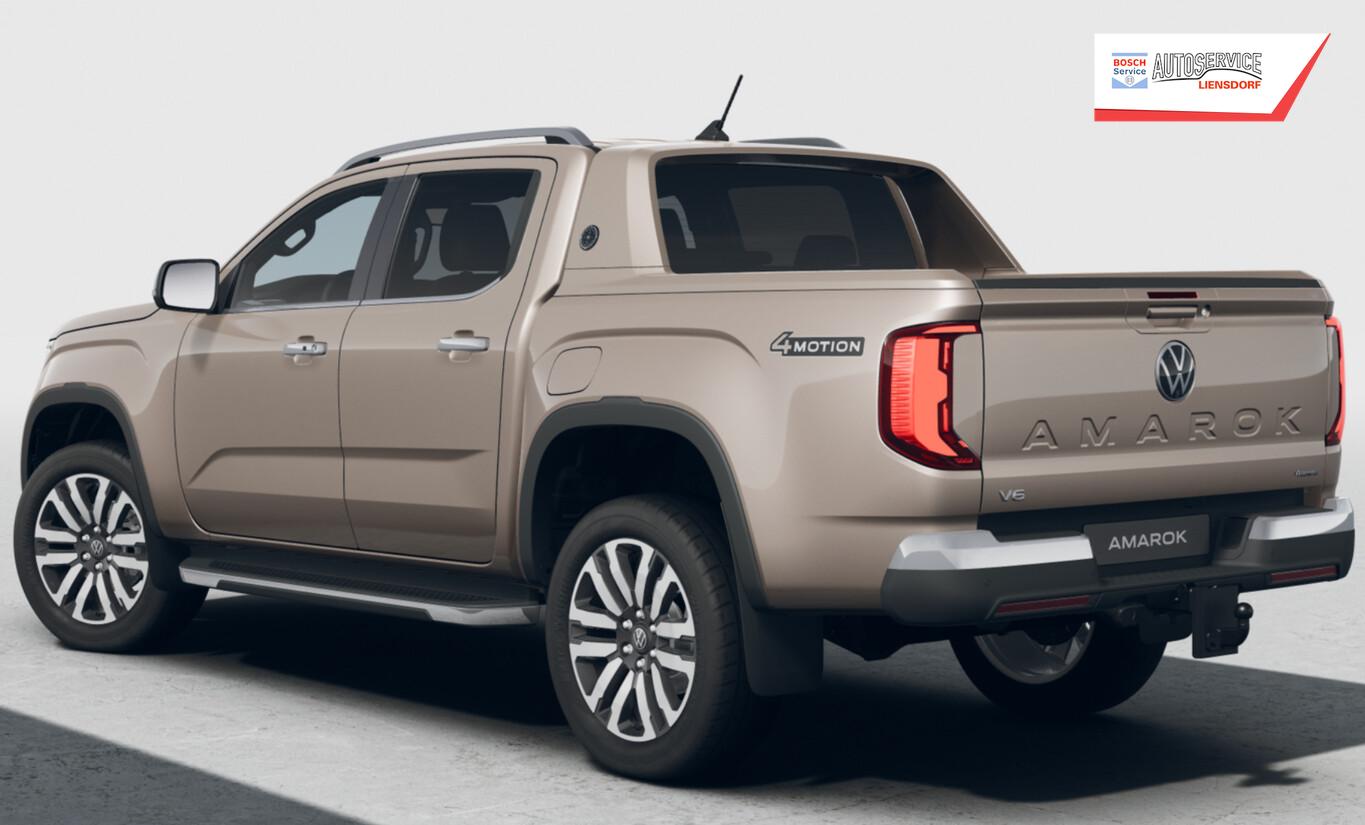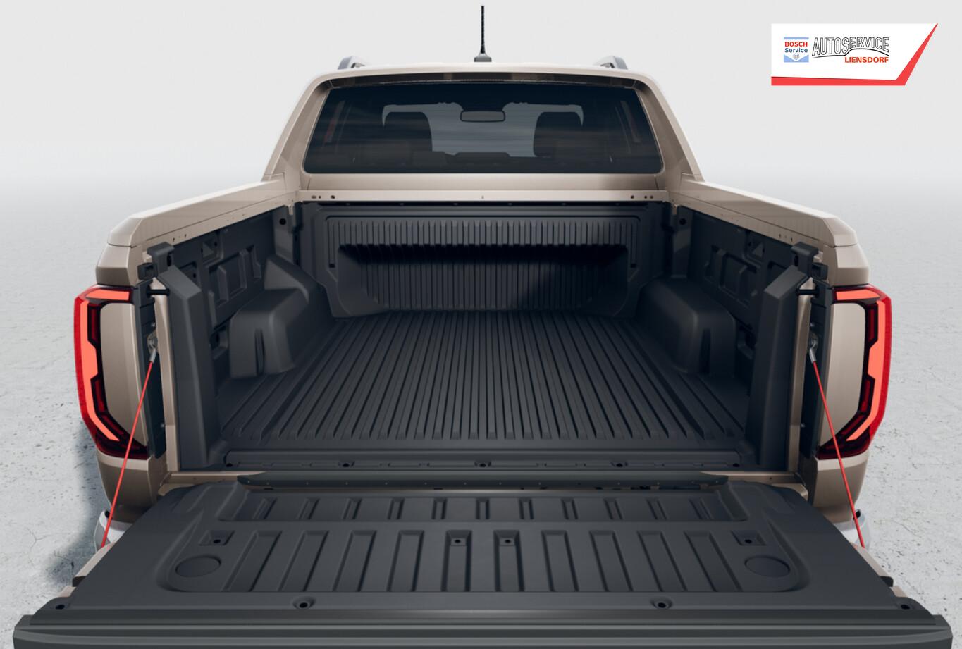 Laderaumjalousie (Roll Cover System elektrisch, Pick-Up), LM-Felgen 8,5x21 (Varberg) (Reserverad in Fahrbereifung (Leichtmetall)), Dachreling silber, Unterfahrschutz Motor / Verteilergetriebe aus Stahl, für Tank aus Kunststoff, Reifen 275/45 R21, Laderaumauskleidung Kunststoff (Steckdose 12V im Koffer-/Laderaum), Vorbereitung für VW Connect (Vorbereitung Onlinedienste), 2.Sitzreihe Sitzbank (3 Sitzplätze), Ambiente-Beleuchtung weiß, Anhängersteckdose 13-polig, Antennen-Diversity, Armaturentafel Kunstleder, Außenspiegel und Türgriffe außen verchromt, Ausstattung Aventura, Dachhimmel Stoff, schwarz, Diebstahlsicherung für Räder (Felgenschlösser), Digital Cockpit (Farbdisplay 12,3 Zoll), Fahrassistenz-System: Multikollisionsbremse (Multi Collision Brake), Federung Komfort, Funkschlüssel / Handsender (2), Haltegriff A-Säule, Beifahrerseite, Handschuhfach abschließbar und beleuchtet, Heckklappe abschließbar über Zentralverriegelung (Pick-Up), Heckklappengriff Wagenfarbe (Pick-Up), Heckscheibe heizbar, Induktionsladeschale für Smartphone (Wireless Charging), Infotainment-System mit Touchscreen-Farbdisplay 12 Zoll für Navigation, Innenraumfilter: Staub- und Pollenfilter, Innenspiegel mit Abblendautomatik, Karosserie/Aufbau: Doppelkabine (Double-Cab), Karosserie/Aufbau: Pick-Up, Kopfstützen hinten (3-fach), Kühlergrill schwarz mit Chromleiste, Ladeflächenbeleuchtung LED (außen), Leseleuchten vorn und Brillenfach, Leuchtweitenregelung automatisch, Mittelarmlehne hinten, Motor 3,0 Ltr. - 177 kW V6 TDI, Parkbremse elektrisch, Radioempfang digital (DAB+), Radstand Standard, Schalt-/Wählhebelgriff Leder, Schmutzfänger vorn und hinten, Sitz vorn links mit Kartentasche, Sonnenblenden mit Spiegel (beleuchtet), Sound-System Harman-Kardon (8 Lautsprecher, Subwoofer, 640 Watt), Sportsbar in Wagenfarbe, Steckdose 120V / 230V in Mittelkonsole hinten und Ladefläche, Stoßfänger hinten schwarz unlackiert mit Chrom-Applikationen, Stoßfänger vorn Wagenfarbe (X-Design), Trittbretter seitlich mit Chromeinlage, Türgriffe innen verchromt, Umfeldbeleuchtung über Infotainment-System einstellbar, Vorbereitung Online Diebstahl-Warnanlage, Warnanlage für Sicherheitsgurte vorn und hinten, Navigationsfunktion, USB-Ladeanschluß (1) am Innenspiegel, Anhängerkupplung (Kugelkopf abnehmbar), Anti-Blockier-System (ABS), Antriebsart: Allradantrieb, Differentialsperre (Hinterachse), Elektron. Stabilitäts-Programm (ESP) mit Bremskraftverstärker elektro-mechanisch, Getriebe Automatik - (10-Stufen), Klimaanlage Climatronic 2-Zonen, Airbag und Knieairbag Fahrer-/Beifahrerseite, Beifahrerairbag abschaltbar, Kindersitzerkennung, Fensterheber elektrisch vorn und hinten, Isofix-Aufnahmen für Kindersitz an Rücksitze (inkl. i-Size-Kindersitze), Schließ-/Startsystem Keyless Access mit Safesicherung, Seitenairbag vorn mit Center-Airbag, Kopf-Airbag-Einheit vorn und hinten, Seitenscheiben hinten und Heckscheibe abgedunkelt, Sitzbezug / Polsterung: Leder Savona, Sitze vorn elektr. verstellbar (10-Wege), Sitzheizung vorn, Verzurrösen auf Ladefläche / Laderaumboden, Zentralverriegelung, Fahrassistenz-System: Fahrprofilauswahl, Frontscheibe Dämmglas, Fahrassistenz-System: Autom. Distanzregelung (ACC inkl. Stop&Go-Funktion), Fahrassistenz-System: Verkehrszeichenerkennung, Rückfahrkamera (Rear View), Notrufsystem, Lenkrad (Leder) mit Multifunktion, Außenspiegel elektr. verstell-, heiz- und anklappbar und Umfeldleuchte, Fahrassistenz-System: Dynamische Fernlichtregulierung (Dynamic Light Assist), Fahrassistenz-System: Fernlichtregulierung (Light Assist), Heckleuchten LED, Matrix-LED-Scheinwerfer (IQ.Light), Nebelscheinwerfer LED, Scheibenwischer mit Regensensor, Einparkhilfe vorn und hinten inkl. Auspark-Assistent, Fahrassistenz-System: Notbremsassistent Front assist mit Fußgänger- und Fahrraderkennung, Fahrassistenz-System: Spurhalteassistent (Lane Assist) inkl. Side Assist, Reifendruck-Kontrollsystem, Rußpartikelfilter