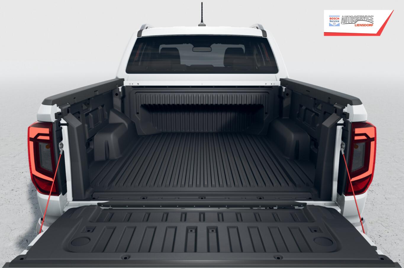 Dachreling silber, Unterfahrschutz Motor / Verteilergetriebe aus Stahl, für Tank aus Kunststoff, LM-Felgen 18 Zoll (Amadora), Reifen 255/65 R18, Assistenz-Paket 3 (Leuchtweitenregelung automatisch / Fahrassistenz-System: Intelligente Adaptive Geschwindigkeitsregelanlage (ACC, Stop&Go) / Fahrassistenz-System: Verkehrszeichenerkennung / Rückfahrkamera (Rear View) / Fahrassistenz-System: Dynamische Fernlichtregulierung (Dynamic Light Assist) / Fahrassistenz-System: Fernlichtregulierung (Light Assist) / Matrix-LED-Scheinwerfer (IQ.Light) / Einparkhilfe vorn und hinten inkl. Auspark-Assistent / Fahrassistenz-System: Notbremsassistent Front assist mit Fußgänger- und Fahrraderkennung / Fahrassistenz-System: Spurhalteassistent (Lane Assist) inkl. Side Assist), Laderaumauskleidung Kunststoff (Steckdose 12V im Koffer-/Laderaum), Vorbereitung für VW Connect (Vorbereitung Onlinedienste), Sitz-Paket ArtVelours (Fahrersitz elektrisch) (Sitz vorn links mit Kartentasche / Sitzbezug / Polsterung: Stoff Style / ArtVelours / Warnanlage für Sicherheitsgurte vorn und hinten / Sitz vorn links elektr. verstellbar 10-Wege, rechts manuell 8-Wege / Sitzheizung vorn), 2.Sitzreihe Sitzbank (3 Sitzplätze), Anhängersteckdose 13-polig, Antennen-Diversity, Armaturentafel Standard, Außenspiegel und Türgriffe außen in Wagenfarbe, Ausstattung Style, Dachhimmel Stoff, grau, Diebstahlsicherung für Räder (Felgenschlösser), Digital Cockpit (Farbdisplay 12,3 Zoll), Fahrassistenz-System: Multikollisionsbremse (Multi Collision Brake), Funkschlüssel / Handsender (2), Haltegriff A-Säule, Beifahrerseite, Handschuhfach abschließbar und beleuchtet, Heckklappe abschließbar über Zentralverriegelung (Pick-Up), Heckklappengriff Wagenfarbe (Pick-Up), Heckscheibe heizbar, Induktionsladeschale für Smartphone (Wireless Charging), Infotainment-System mit Touchscreen-Farbdisplay 12 Zoll für Navigation, Innenraumfilter: Staub- und Pollenfilter, Innenspiegel mit Abblendautomatik, Karosserie/Aufbau: Doppelkabine (Double-Cab), Karosserie/Aufbau: Pick-Up, Kopfstützen hinten (3-fach), Kühlergrill schwarz mit Chromleiste, Ladeflächenbeleuchtung LED (außen), Lautsprecher (6), Leseleuchten vorn und Brillenfach, Mittelarmlehne hinten, Motor 3,0 Ltr. - 177 kW V6 TDI, Parkbremse elektrisch, Radioempfang digital (DAB+), Radstand Standard, Schalt-/Wählhebelgriff Leder, Schmutzfänger vorn und hinten, Sonnenblenden mit Spiegel (beleuchtet), Steckdose 120V / 230V in Mittelkonsole hinten und Ladefläche, Stoßfänger hinten schwarz unlackiert mit Chrom-Applikationen, Stoßfänger vorn Wagenfarbe, Türgriffe innen verchromt, Umfeldbeleuchtung über Infotainment-System einstellbar, Vorbereitung Online Diebstahl-Warnanlage, Navigationsfunktion, USB-Ladeanschluß (1) am Innenspiegel, Anhängerkupplung (Kugelkopf abnehmbar), Anti-Blockier-System (ABS), Antriebsart: Allradantrieb, Differentialsperre (Hinterachse), Elektron. Stabilitäts-Programm (ESP) mit Bremskraftverstärker elektro-mechanisch, Getriebe Automatik - (10-Stufen), Klimaanlage Climatronic 2-Zonen, Airbag und Knieairbag Fahrer-/Beifahrerseite, Beifahrerairbag abschaltbar, Kindersitzerkennung, Fensterheber elektrisch vorn und hinten, Isofix-Aufnahmen für Kindersitz an Rücksitze (inkl. i-Size-Kindersitze), Schließ-/Startsystem Keyless Access mit Safesicherung, Seitenairbag vorn mit Center-Airbag, Kopf-Airbag-Einheit vorn und hinten, Seitenscheiben hinten und Heckscheibe abgedunkelt, Verzurrösen auf Ladefläche / Laderaumboden, Zentralverriegelung, Fahrassistenz-System: Fahrprofilauswahl, Frontscheibe Dämmglas, Notrufsystem, Lenkrad (Leder) mit Multifunktion, Außenspiegel elektr. verstell-, heiz- und anklappbar und Umfeldleuchte, Nebelscheinwerfer LED, Scheibenwischer mit Regensensor, Reifendruck-Kontrollsystem, Rußpartikelfilter