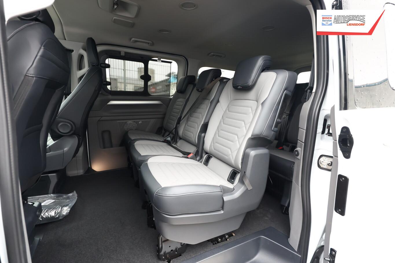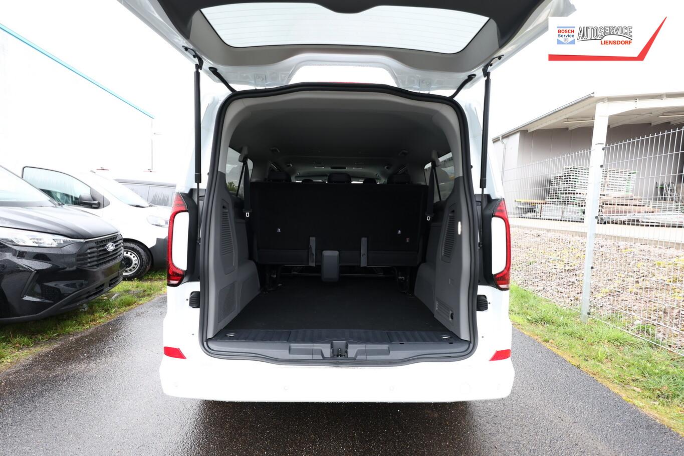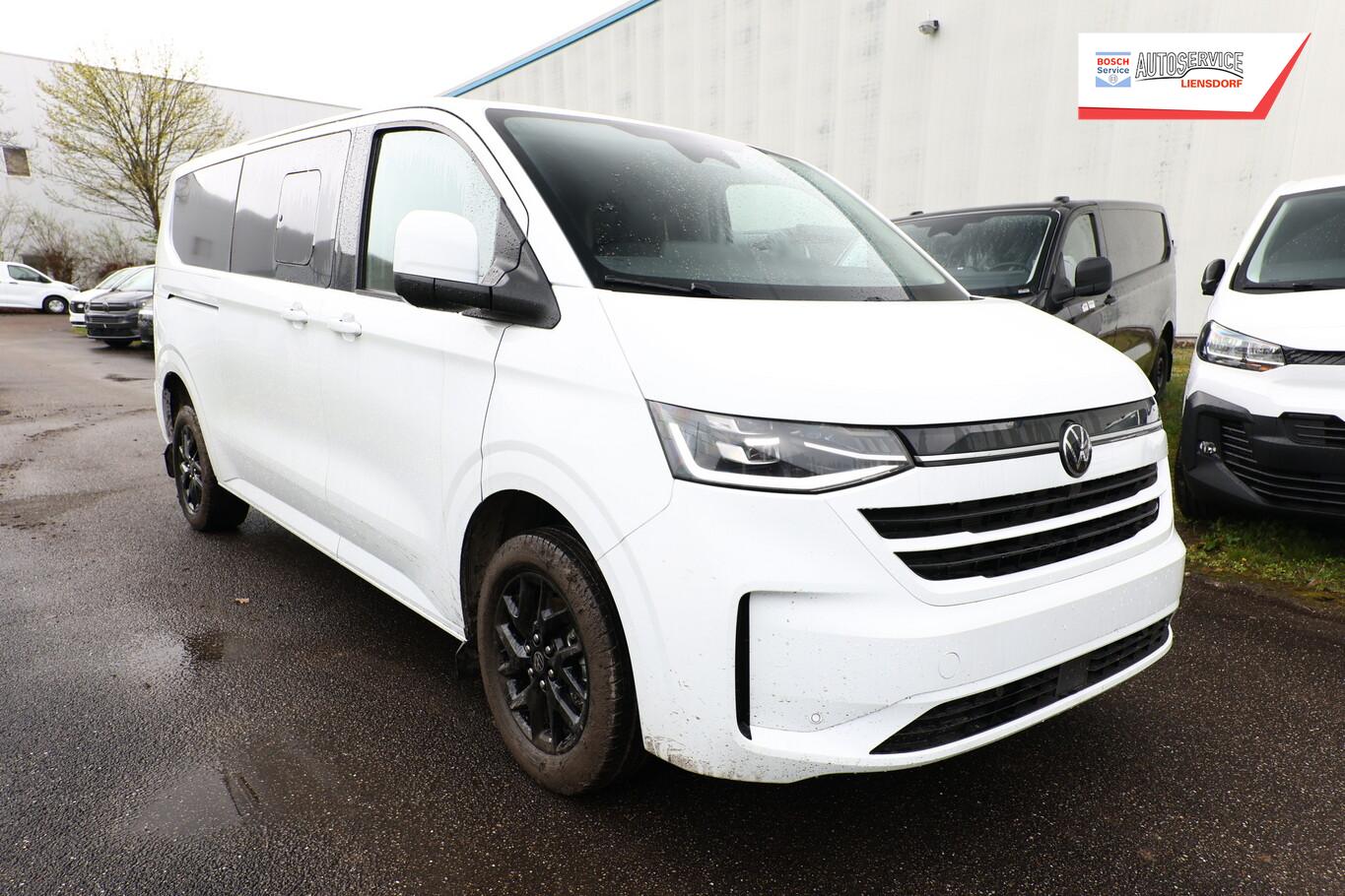 Navigationssystem mit Touchscreen-Farbdisplay 13" mit App-Connect Wireless, Fahrassistenz-Paket Plus (Rückfahrkamera / Fahrassistenz-System: Einparkhilfe vorn und hinten), Vorbereitung Anhängerkupplung (Kabel), Sonnenschutzrollo im Fahrgastraum, Fenster im Lade-/FG-Raum: - ausstellbar, vorn links, Fenster im Lade-/FG-Raum: - ausstellbar, vorn rechts, Kraftstofftank: 70 Ltr., LM-Felgen 6,5x17 (Le Mans, schwarz, glänzend), 12V-Steckdose an D-Säule rechts, 12V-Steckdose in der Mittelkonsole, Außenspiegel elektr. verstell-, heiz- und anklappbar, Handschuhfach beleuchtet, Lenkrad (Kunstleder) mit Multifunktion, Reifen 215/60 R17, Schmutzfänger vorn und hinten, Sitze vorn verstellbar (6-fach), Außenspiegel und Türgriffe außen in Wagenfarbe, Ausstattungs-Paket: Exterieur-Paket, Anbauteile lackiert, Kühlergrill & Stoßfänger in Wagenfarbe und Chromspange, Batterie 80 Ah, Digital Cockpit (Instrumentenanzeige Digital), Einstiegsleisten Schiebetür (Metall) beleuchtet, Frontscheibe Verbundglas, Haltegriffe am Dachrahmen Fahrer-/Beifahrerseite, Haltegriff an B-Säule Fahrgastraum, Heckscheibe heizbar, Innenleuchten im Fahrerhaus: LED, Innenspiegel abblendbar, Karosserie/Aufbau: Bus, Kopfstützen vorn höhen-/neigungsverstellbar, Lautsprecher (10), Motor 2,0 Ltr. - 110 kW TDI, Radstand 3500 mm, Schiebetüren Lade-/Fahrgastraum links/rechts inkl. Zuziehhilfe, Schließ-/Startsystem Keyless Access ohne Safesicherung, SCR-System (AdBlue-Technologie), Sitzausstattung: 8-Sitzer, Sitze im Fahrerhaus: Lendenwirbelstützen Fahrer- und Beifahrersitz, Sitze im Lade-/FG-Raum: 1.Reihe, 3 Einzelsitze klapp- und wickelbar und 2.Reihe, 3er-Sitzbank, 6x Isofix, 4x Top Tether, Sitze im Lade-/FG-Raum: 2.Reihe, 3er-Sitzbank, Steckdosen (12V-Anschluß) im Lade-/Fahrgastraum (2 Stück), Vorbereitung für VW Connect, Mobiltelefon Schnittstelle Bluetooth, USB-Anschluss 7-fach im Fahrerhaus und 6-fach im Fahrgastraum, Antriebsart: Frontantrieb, Elektron. Stabilitäts-Programm (ESP), Wegfahrsperre (elektronisch), Getriebe 6-Gang, Klimaanlage Fahrerhaus und Fahrgastraum (3-Zonen mit autom. Regelung) mit Digitales Bedienteil im Fahrgastraum, Zusatzheizung elektrisch, Airbag Fahrer-/Beifahrerseite, Beifahrerairbag abschaltbar, Seitenairbag / Kopfairbag (Curtain-Airbag) vorn und Kopfairbag (Curtain-Airbag) hinten, Sitzbezug / Polsterung: Kunstleder, Sitze im Fahrerhaus: Fahrer- und Beifahrersitz heizbar, Sitze im Fahrerhaus: Fahrer- und Beifahrersitz mit Armlehnen vorn, Verglasung hinten abgedunkelt, Verzurrösen (2), Fahrassistenz-System: Geschwindigkeits-Regelanlage mit Intelligenter Geschwindigkeits-Assistent, Fahrassistenz-System: Verkehrszeichenerkennung mit Falschfahrer-Warnfunktion, Notrufsystem, Fahrassistenz-System: Dynamische Fernlichtregulierung (Dynamic Light Assist), Heckleuchten LED mit exklusiver Lichtsignatur, Matrix-LED-Scheinwerfer (IQ.Light) inkl. Coming- und Leaving-Home, Fahrassistenz-System: Notbrems-Assistent, Fußgänger- und Fahrraderkennung, Ausweichunterstützung und Abbiege-Assistent, Fahrassistenz-System: Spurhalteassistent (Lane Assist)